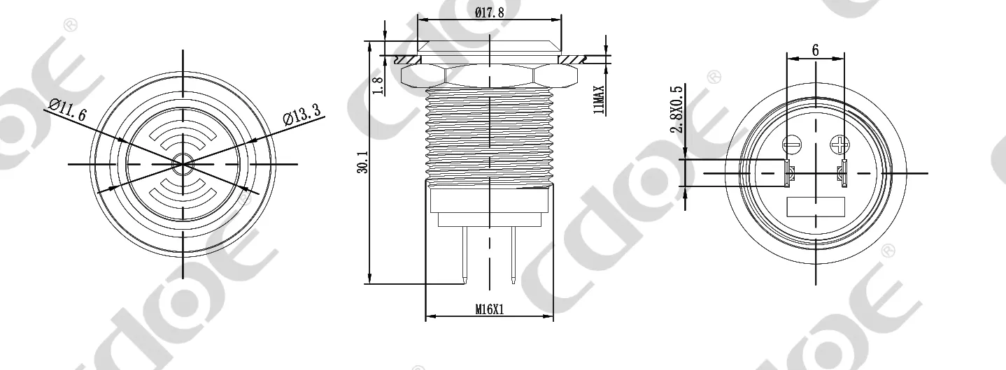 Тип клеммы: штыревая клемма/винтовая клемма Материал корпуса: нержавеющая сталь Водонепроницаемость: IP40/IP65 Цвет светодиода: красный Интенсивность звука: ≥85 дБ (0,1 м) ≥75 дБ (1 м) |